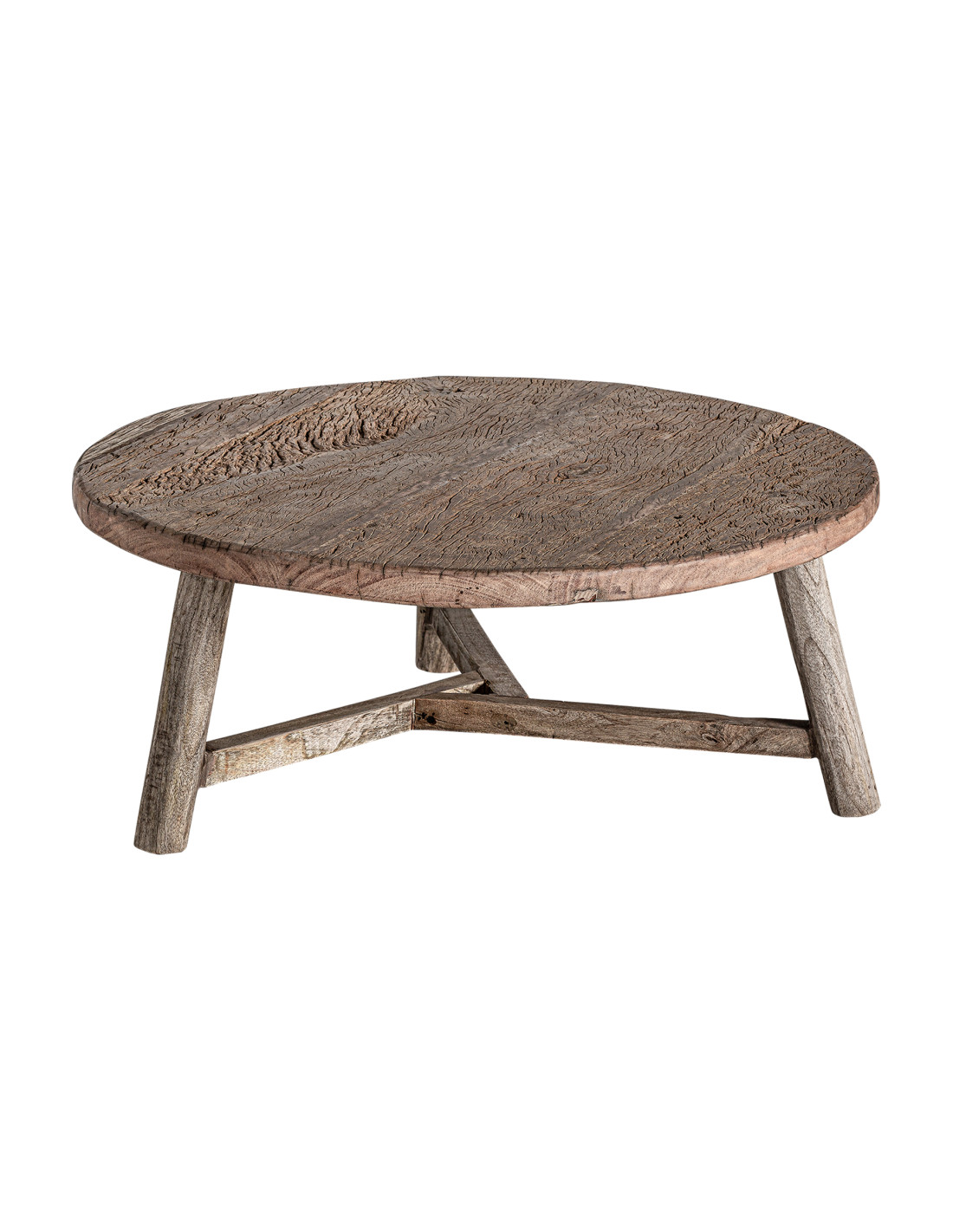 Mesa auxiliar samsun, en color natural envejecido, de estilo étnico. Fabricado en madera de pino reciclado, combinado con madera de mango reciclada y madera de teka reciclada. Acacia reciclada.