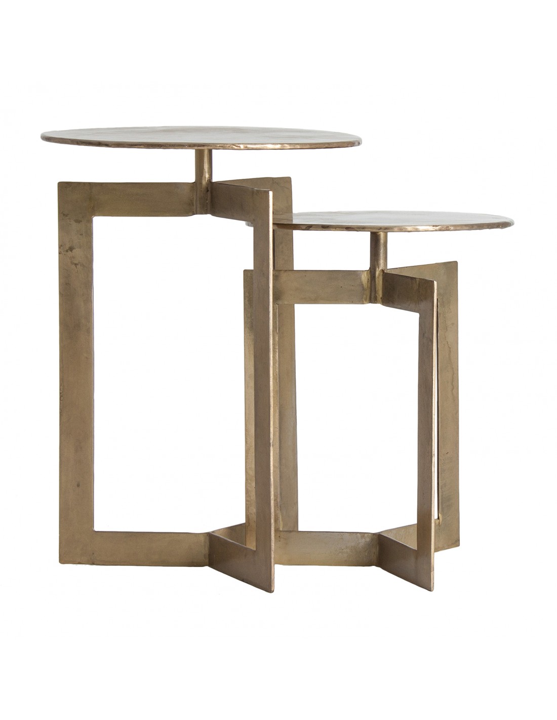 Mesa auxiliar j/2 redonda lure, en color oro viejo, de estilo art deco. Fabricado en hierro. Producto desmontable, elevable.