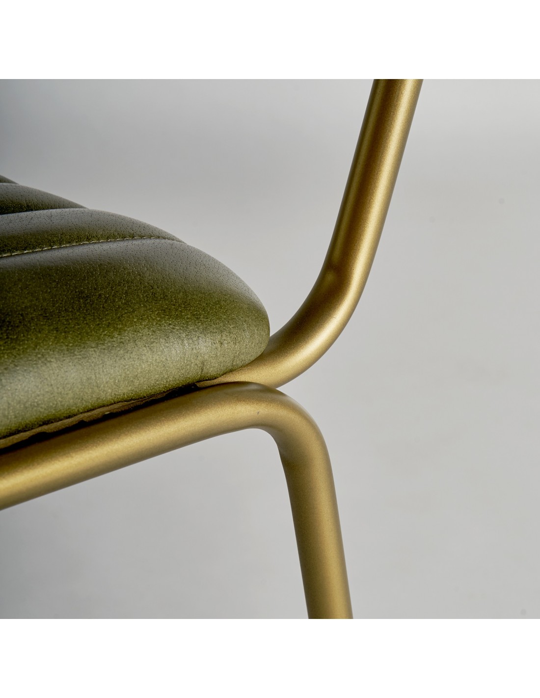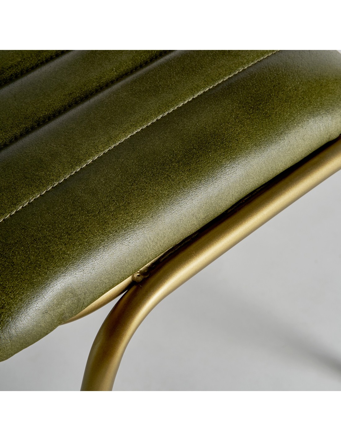 Esta silla reúne los materiales de última tendencia en decoración e interiorismo. Ratán natural para el respaldo y asiento de cuero con tonos verdes estilo vintage. La pureza del ratán está en alza y, gracias a su estilo atemporal y resistencia, le da un toque de personalidad y sostenibilidad a cada pieza evocando tranquilidad.